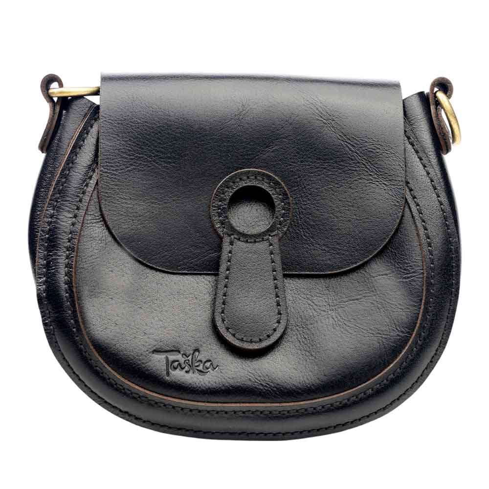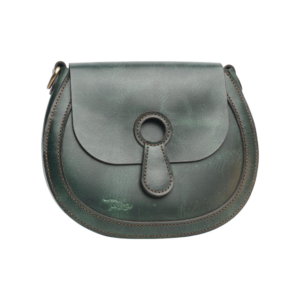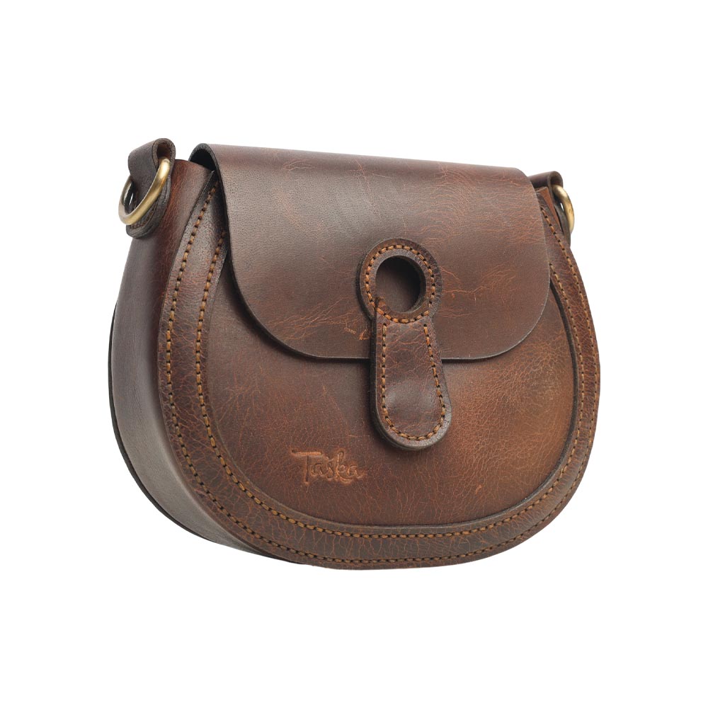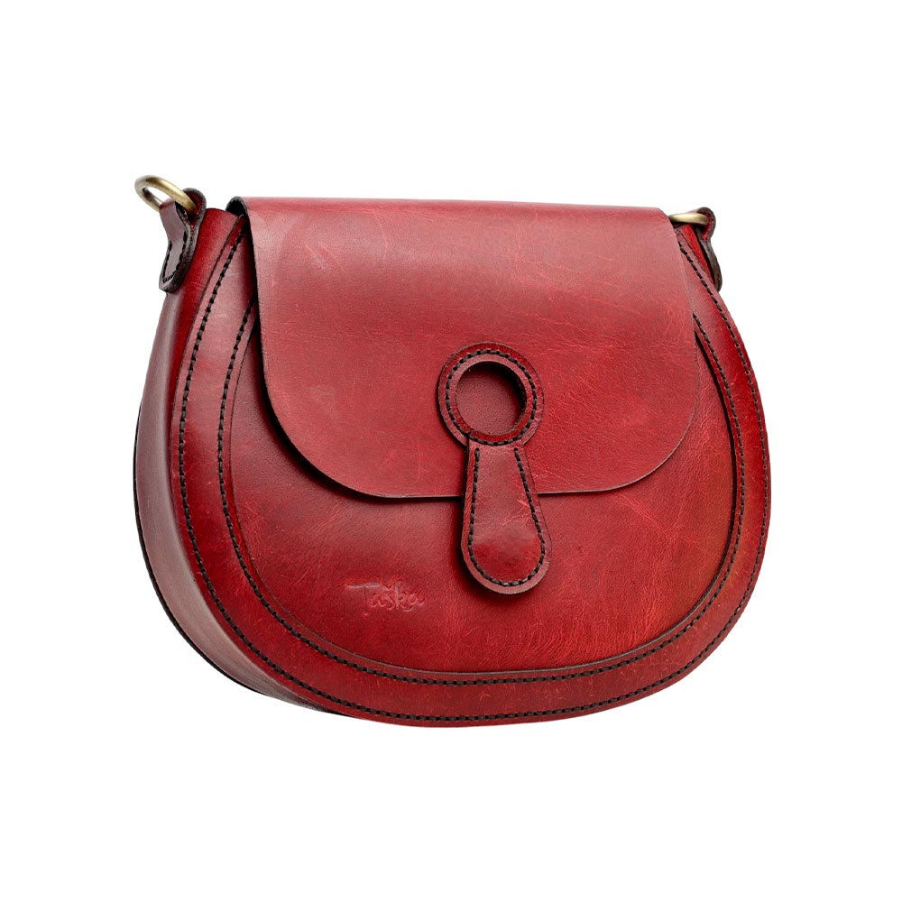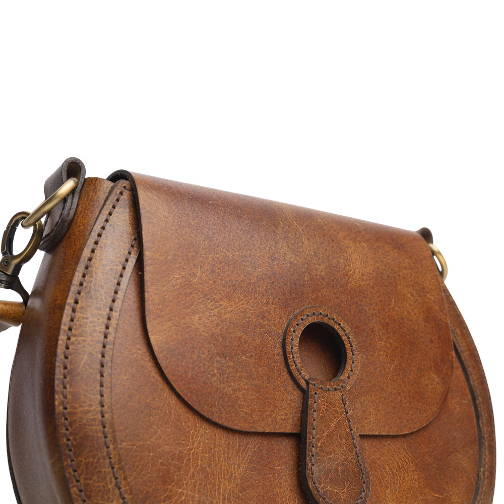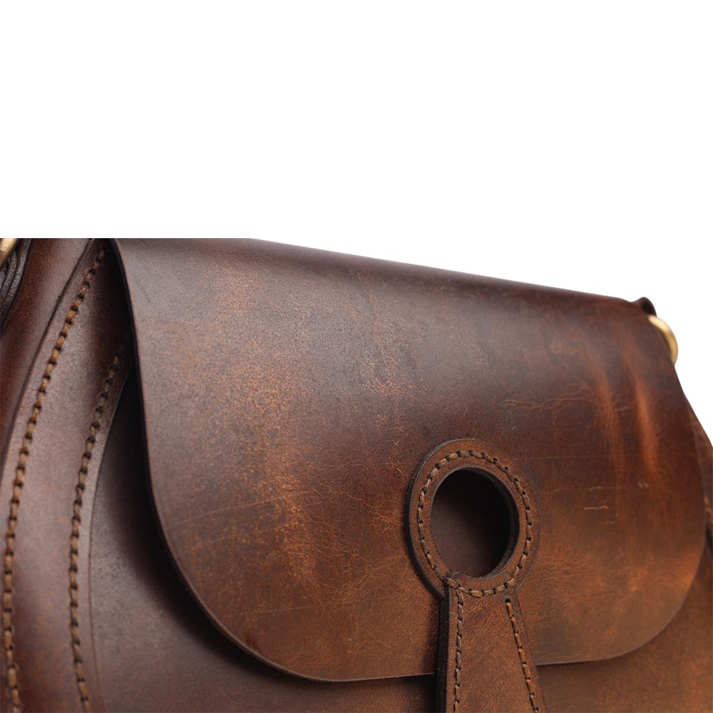 This elegant leather saddle bag combines vintage charm with modern functionality. Made from durable Buffalo full-grain leather with a unique Crazy-horse finish, it features a magnet closure for easy opening and two adjustable straps for versatile wear. The Hand-stitched design ensures quality craftsmanship, while an internal pocket with a card holder adds practicality, making it perfect for everyday use or special occasions.